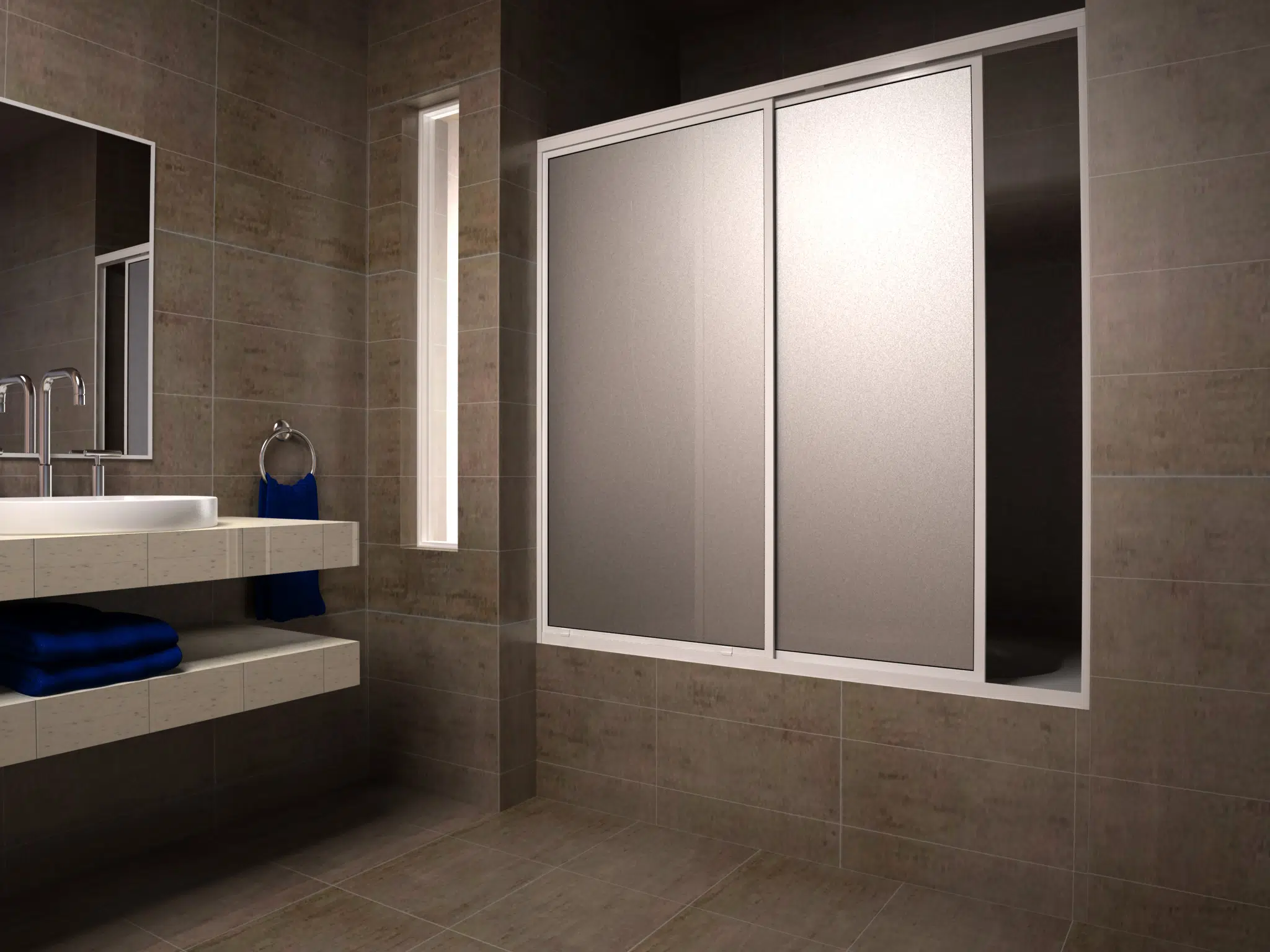 Línea económica que considera perfiles blancos y acrílico para cerrar el espacio de la tina. Dos hojas correderas móviles. Disponibles en medidas de stock y también configurables a medida.