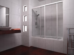 Línea económica que considera perfiles blancos y acrílico para cerrar el espacio de la tina. Dos hojas correderas móviles. Disponibles en medidas de stock y también configurables a medida.