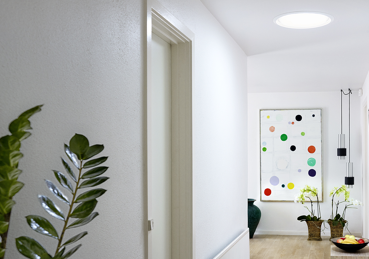El túnel solar permite llevar luz natural a espacios que antes eran iluminados exclusivamente con luz artificial, como pasillos, salas de baño, subterráneos y walk-in closets. La nueva versión del túnel solar VELUX transmite durante el día una luz más dinámica y natural en comparación con la luz eléctrica, lo que asegura una experiencia única y ayuda a reducir el consumo energético.