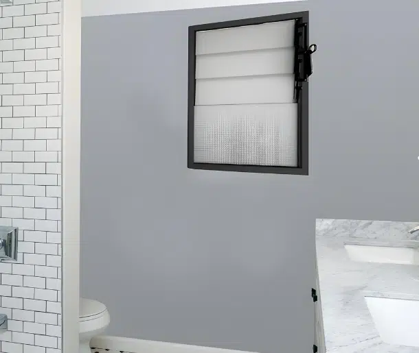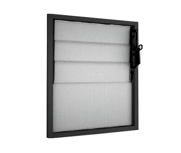 Cristal fijo inferior con celosía de tres aspas móviles superiores, accionadas por sistema de poliamida de alta resistencia. Cristal stipolite para baño, no permitiendo la visión hacia el interior, sólo deja pasar la luz. Producto especialmente diseñado para otorgar una muy buena ventilación en lugares húmedos (logias, cocinas y baños principalmente), aumentando la circulación de aire.