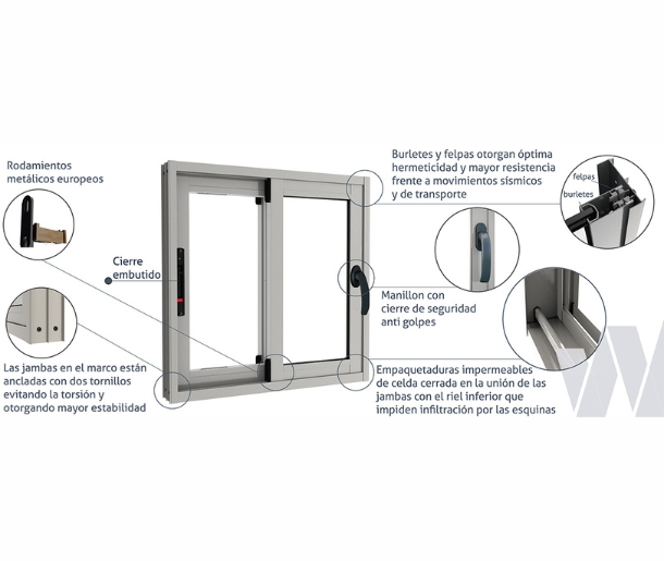 | Movilidad | Corredera dos hojas, una hoja es fija |