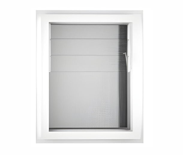 Cristal fijo inferior con celosía de tres aspas móviles superiores, accionadas por sistema metálico de alta resistencia. Cristal stipolite para baño no permitiendo la visión hacia el interior, sólo deja pasar la luz. Producto especialmente diseñado para otorgar una muy buena ventilación en lugares húmedos (logias y cocinas principalmente), aumentando la circulación de aire. PVC con filtros para rayos UV permitiendo la estabilidad del producto en el tiempo. Únicos perfiles del mercado con certificación internacional de la AAMA (Agencia de certificación de productos.